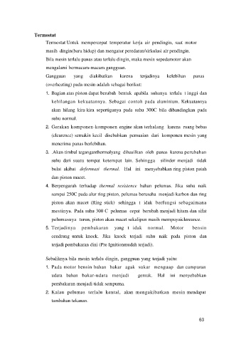 Termostat Untuk mempercepat temperatur kerja air pendingin, saat motor