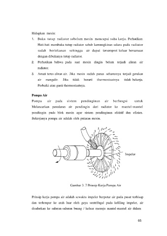 Bekerjanya pompa air adalah oleh putaran mesin.