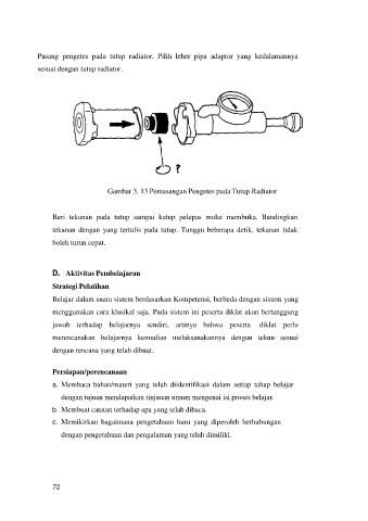 Gambar 3. 13 Pemasangan Pengetes pada Tutup Radiator