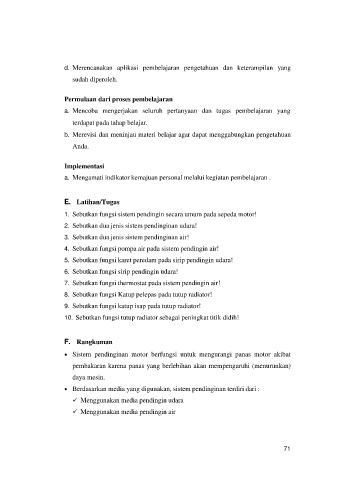 d. Merencanakan aplikasi pembelajaran pengetahuan dan keterampilan yang