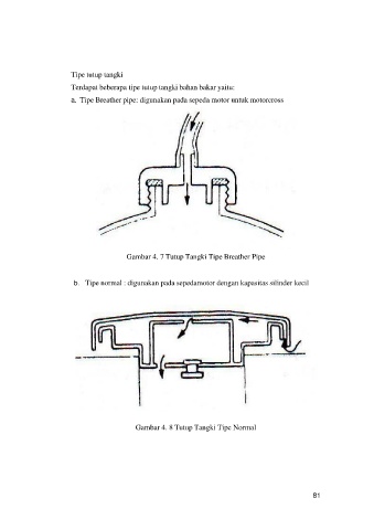 Terdapat beberapa tipe tutup tangki bahan bakar yaitu: