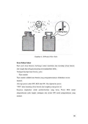 Fuel cock (kran bensin); berfungsi untuk membuka dan menutup aliran bensin