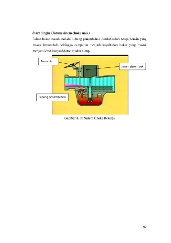 Bahan bakar masuk melalui lubang penambahan Jumlah udara tetap, bensin yang