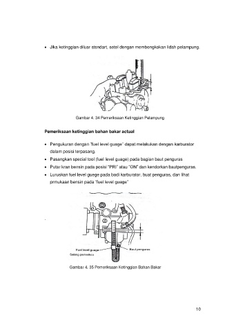 Pengukuran dengan “fuel level guage” dapat melakukan dengan karburator