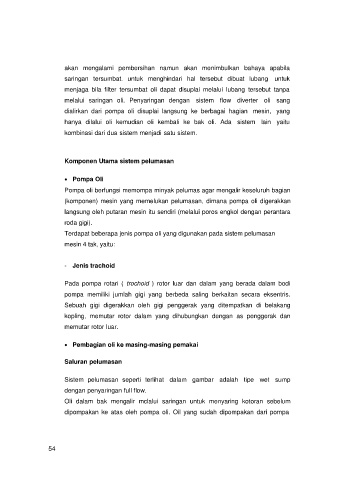 hanya dilalui oli kemudian oli kembali ke bak oli. Ada sistem lain yaitu