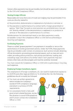 to US FCPA and other legal prohibitions. To minimise this risk, the following