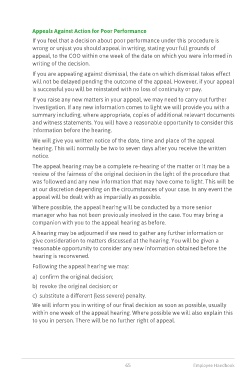 Appeals Against Action for Poor Performance