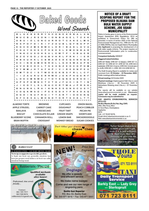 · PAGE 10 THE REPORTER 17 OCTOBER 2025 BARKLY EAST AS IEMAND STEEL - LEI BAIE MENSE SKADE Verwerp en rapporteer gesteelde goedere. ‘n Saak van besit van gesteelde eiendom kan teen jou geopen word indien u in besit van sulke eiendom betrap word.