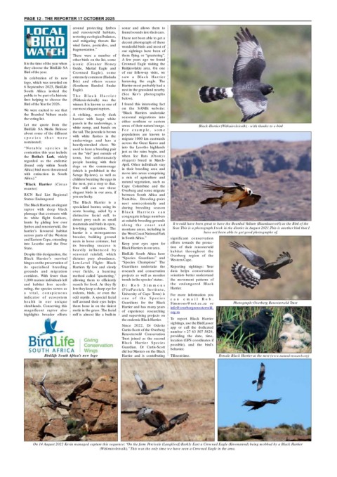Black Harrier’s survival dictates prey abundance. “Species Guardians” and Western Cape.