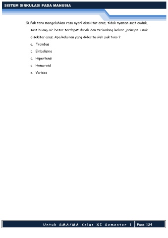 10. Pak tono mengeluhkan rasa nyeri disekitar anus, tidak nyaman saat duduk,