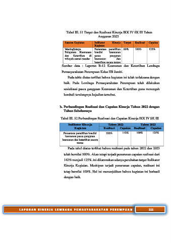 Tabel III. 52 Perbandingan Realisasi dan Capaian Kinerja IKK IV SK III
