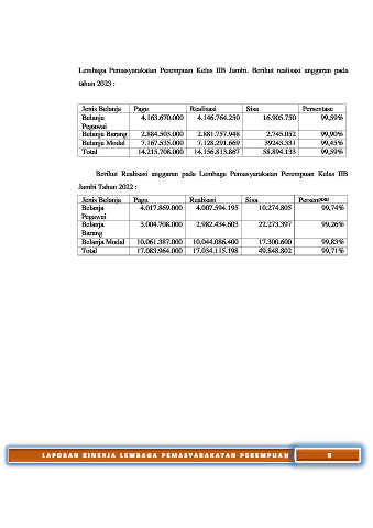Lembaga Pemasyarakatan Perempuan Kelas IIB Jambi. Berikut realisasi anggaran pada