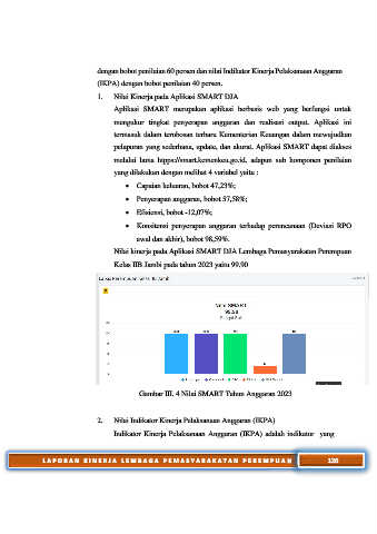 dengan bobot penilaian 60 persen dan nilai Indikator Kinerja Pelaksanaan Anggaran