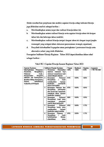 Selain memberikan penjelasan dan analisis capaian kinerja setiap indicator kinerja
