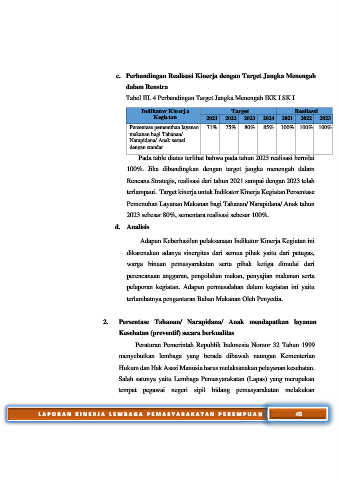 c. Perbandingan Realisasi Kinerja dengan Target Jangka Menengah