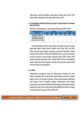 Tabel III. 16 Perbandingan Target Jangka Menengah IKK V SK I