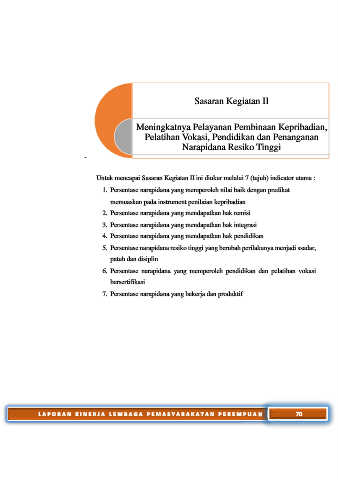 Untuk mencapai Sasaran Kegiatan II ini diukur melalui 7 (tujuh) indicator utama :