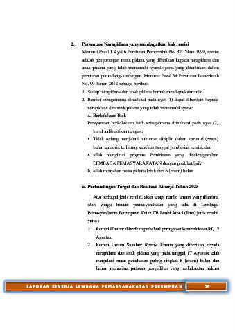 2. Persentase Narapidana yang mendapatkan hak remisi