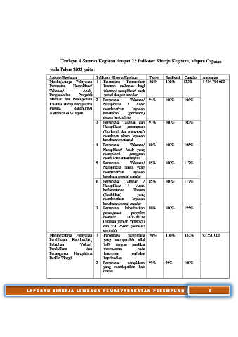 Sasaran Kegiatan Indikator Kinerja Kegiatan Target Realisasi Capaian Anggaran