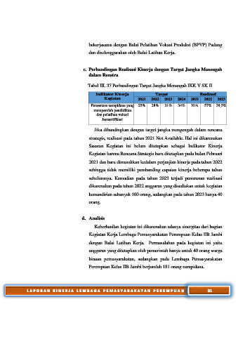 strategis, realisasi pada tahun 2021 Not Available. Hal ini dikarenakan