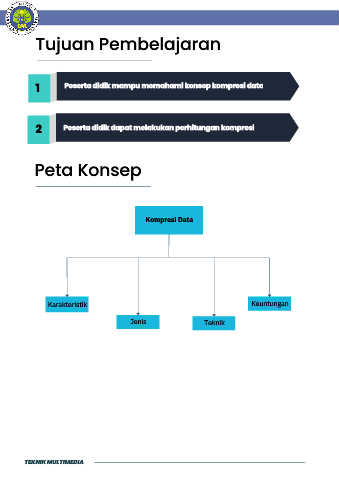 Tujuan Pembelajaran 1 Peserta didik mampu memahami konsep kompresi data 2 Peserta didik dapat melakukan perhitungan kompresi Summary Point 2 Peta Konsep Kompresi Data Karakteristik Keuntungan Jenis Teknik TEKNIK MULTIMEDIA