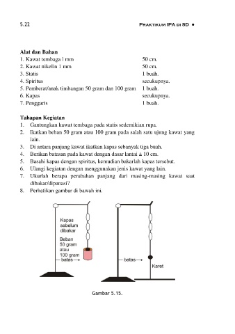 2. Ikatkan beban 50 gram atau 100 gram pada salah satu ujung kawat yang