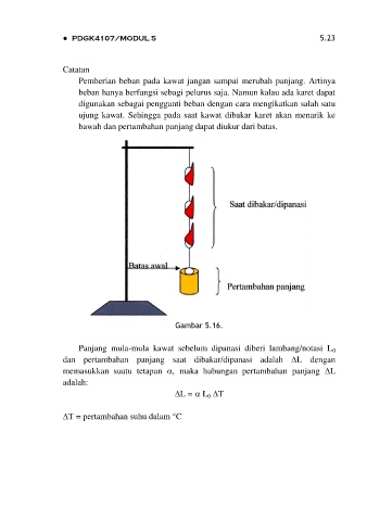 Pemberian beban pada kawat jangan sampai merubah panjang. Artinya