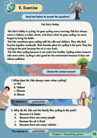 Pak Edo’s hobby is cycling. he goes cycling every morning. Pak Eso always