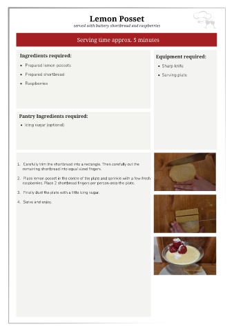raspberries. Place 2 shortbread fingers per person onto the plate.