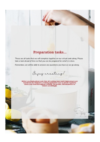 These are all tasks that we will complete together on our virtual cook along. Please