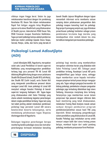 KIPRAH PSIKOLOGI KIPRAH PSIKOLOGI TNI ANGKATAN UDARA TNI ANGKATAN UDARA Psikologi Lanud Adisutjipto (ADI) 98