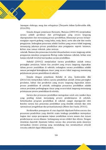 (2016:156) menyatakan bahwa sarana pendidikan adalah semua perangkat