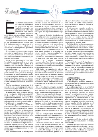demencia se duplique hasta alcanzar aproxi- que ocurre tanto en el intestino como en el ce- Microbes en diciembre, titulado “Anormalida-