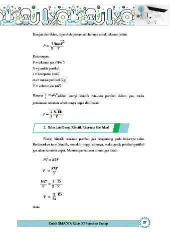 Dengan demikian, diperoleh persamaan lainnya untuk tekanan yaitu: