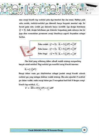 (ƒ = 3). Jadi, derajat kebebasan gas diatomic bergantung pada suhunya dan ini