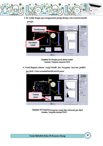 4. Amati diagram sebaran energi kinetik dan kecepatan rata-rata partikel
