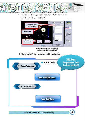 8. Ubah suhu wadah menggunakan pengatur suhu. Catat nilai suhu dan