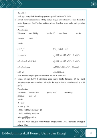 3. Usaha sebesar 1.470 J diberikan pada suatu benda bermassa 15 kg untuk