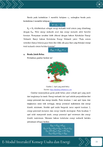 dari tangkainya ke tanah. Energi mekanik dari apel adalah penjumlahan dari