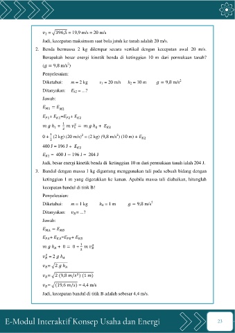 Jadi, besar energi kinetik benda di ketinggian 10 m dari permukaan tanah ialah 204 J.
