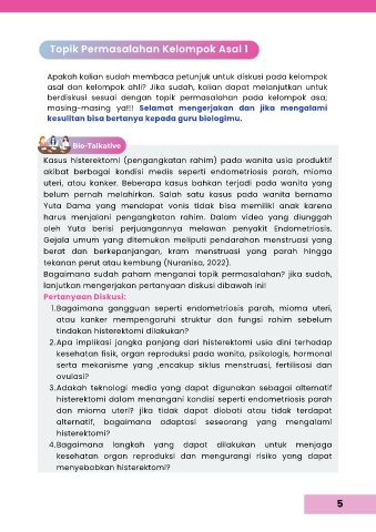 berdiskusi sesuai dengan topik permasalahan pada kelompok asa;