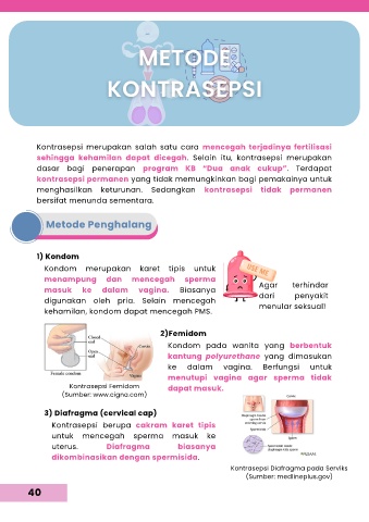 Kontrasepsi merupakan salah satu cara mencegah terjadinya fertilisasi