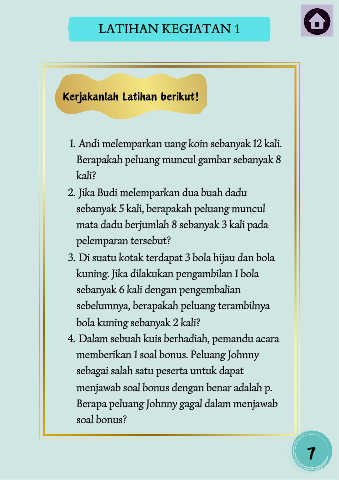 1. Andi melemparkan uang koin sebanyak 12 kali.