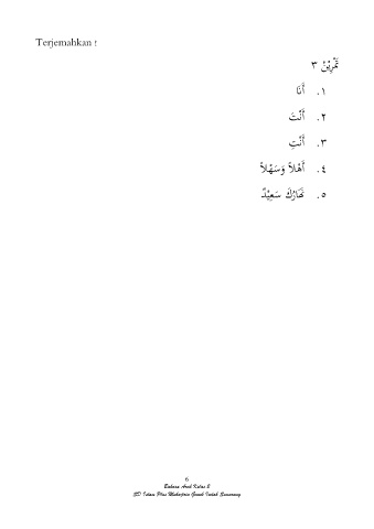 Terjemahkan ! ِ 3 نيرتَ َْ ْ ْ َ نََأ 1 . تنَ أ 2 . ْ َ ِ تنَ أ 3 . ْ ً لاهسو لاهَ أ 4 . ً ْ ْ َ َ ِ ديعس كرانَ َ 5 . َ ٌ َ ْ َ ُ 6 Bahasa Arab Kelas 2 SD Islam Plus Muhajirin Genuk Indah Semarang