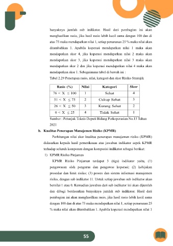 % maka nilai akan ditambahkan 1. Apabila koperasi mendapatkan nilai 1