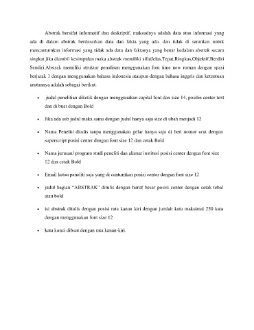 Abstrak bersifat informatif dan deskriptif, maksudnya adalah data atau informasi yang