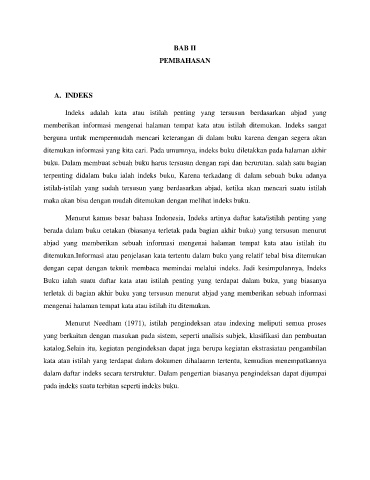 Menurut Needham (1971), istilah pengindeksan atau indexing meliputi semua proses