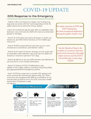 • March 18-DDS suspended all road testing, non-com- For the Month of March, the