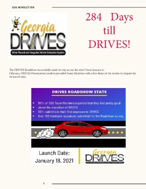 DDS NEWSLETTER 284 Days till DRIVES! The DRIVES Roadshow successfully made its way across the state! From January to February, DRIVES Presentation Leaders provided Team Members with a live demo of the system to prepare for its launch date. 6