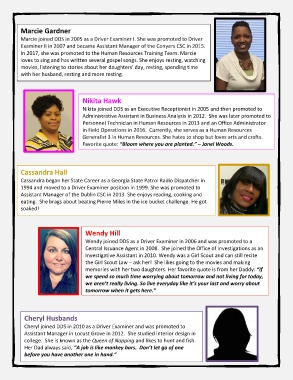 Examiner II in 2007 and became Assistant Manager of the Conyers CSC in 2015.
